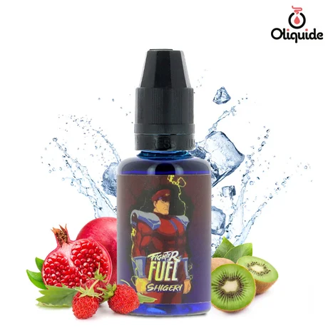 Fraise des bois, grenade, kiwi et effet froid, c’est le combo explosif de l'arôme Shigeri, l’un des combattants les plus agiles de l’arène Fighter Fuel. Cet arôme concentré de 30 ml met en scène une alliance fruitée prête à accompagner les vapoteurs dans leur duel quotidien contre la cigarette. La fraise des bois assure la précision des coups, la grenade apporte la puissance aromatique au centre du ring, tandis que le kiwi injecte son énergie et son tempérament. Le tout évolue dans un souffle glacé maîtrisé, pensé pour garder la motivation au maximum tout au long du sevrage tabagique. Sans oublier le sucralose qui va vous coller la main au clearomiseur.