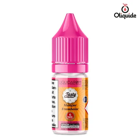 Ce e-liquide Mangue Framboise est proposé ici en 6 mg : fumeurs modestes - entre 5 et 10 cigarettes/jour