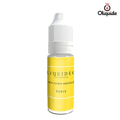 Vous aimez les dessert, c'est donc ce e-liquide qu'il vous faut. Tarte au citron meringuée de Liquideo est une véritable douceur pour le palais. À chaque bouchée ... heur à chaque vape, pardon, c'est un véritable morceau de tarte qui vous arrive en bouche., comme si vous aviez réussi à bourrer dans votre clearomiseur, la pâte, le citron et la meringue !