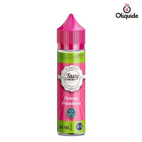 Vous aimez la pomme ? Vous avez un faible pour la framboise ? Alors asseyez-vous confortablement, sortez votre cigarette électronique et laissez Liquidarom faire le reste. Avec cet e-liquide pomme framboise de la Tasty Collection, la marque joue les chefs d’orchestre aromatique et fait se rencontrer deux arômes incontournables de la vape fruitée. Résultat : un eliquide grand format équilibré, vif et bien construit, pensé pour accompagner vos journées sans jamais lasser votre matériel.