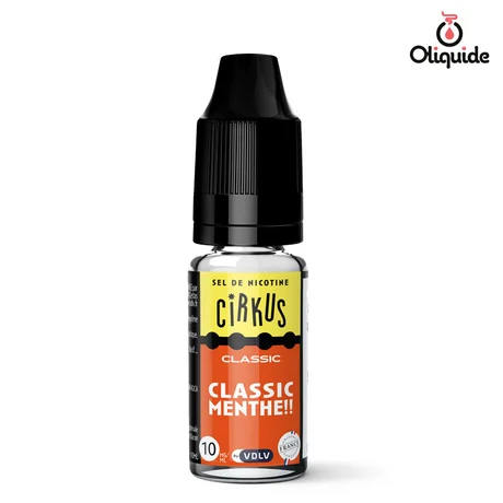 Si vous étiez l’un des derniers fumeurs de mentholé, vous n’êtes sûrement pas tombé là par hasard. Classic Menthe, c’est ce e-liquide Cirkus au classic blond et à la menthe, caractéristique d’une autre époque. Si vous êtes venus dans notre boutique, c’est sûrement dans l’espoir de trouver une alternative à vos anciennes cigarettes mentholées. Vapo sait ce que c’est, il est prêt à vous conseiller. Classic Menthe est un e-liquide au ratio de 50/50 PG/VG, idéale pour une vape quotidienne. Et en plus, il est certifié AFNOR et Origine France Garantie. Il ne vous promet pas de gros nuages, mais une vape stable, avec des sensations proches de vos anciennes mentholées.