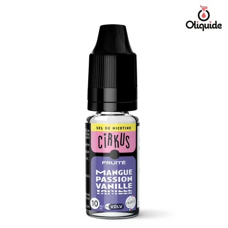 Vous savez ce que ça fait de mettre un trio exotique dans votre pod ? Mangue Passion Vanille est le e-liquide Cirkus au sel de nicotine qui vous laisse le découvrir. Une bataille entre la mangue juteuse, la passion et la vanille aromatique. Mais qui en sera le grand vainqueur ? Aucune des trois. Conditionné dans un taux de 50/50 pg/vg, ce e-liquide Cirkus ne laisse rien au hasard. Pas une saveur n’écrase l’autre. Pour Vapo, c’est une impression de vacances à chaque aspire. Un moment presque paradisiaque avant de reprendre le métro, boulot, dodo. Mangue Passion Vanille, c’est une alternative tropicale pour une vape moins irritante.