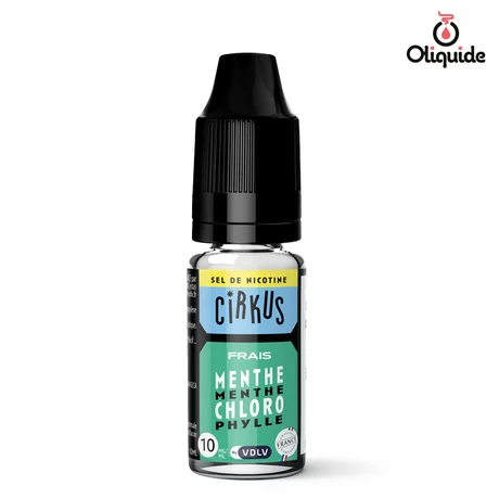 Vapo trouvait qu’on n’avait pas assez de fioles vertes sur le site. On a du rouge, du bleu, du rose, mais pas assez de vert. On a donc pas trouvé plus vert que le e-liquide Menthe Chlorophylle de Cirkus en sel de nicotine. Impossible. Rien qu’en lisant les arômes, on a les poils qui se lèvent. Si vous pensez à la mâcher, oubliez. Cette saveur de chewing-gum menthe se vapote uniquement en 50/50 PG/VG (sans risque de coller au drip tip). Ce flacon Origine France Garantie contient de la nicotine vapologique. Vous pouvez choisir entre 10 et 20 mg de sel de nicotine pour votre sevrage tabagique.